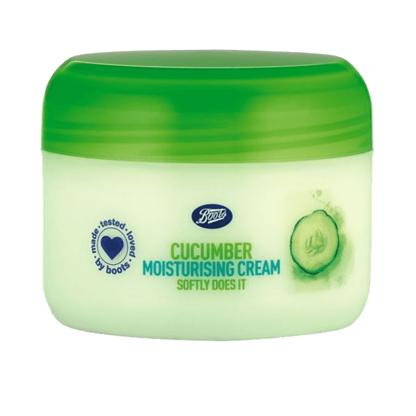 This moisturizing cucumber cream requires no slicing. The combination of vitamins and soothing cucumber help to soothe and soften skin, while boosting its anti-oxidant levels to protect skin cells from environmental damage. Contains extract of cucumber to help gently soften and soothe. Enriched with soothing cucumber and vitamins this cream is suitable for day or night use. Contains antioxidants to help protect the skin from environmental damage.