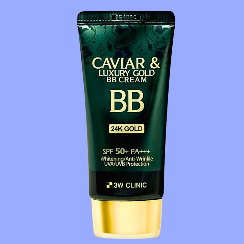 The 3W Clinic Caviar & Luxury Gold BB Cream is a moisturizing, anti-aging formula offering high SPF (50+/PA+++) sun protection, balancing skin tone, concealing imperfections, and improving elasticity with key ingredients like caviar extract, 24K gold, niacinamide, and adenosine for a radiant, porcelain-like finish. It's a lightweight, creamy texture that hydrates, brightens, and provides long-lasting, natural coverage without clogging pores, making it a great makeup-skincare hybrid.