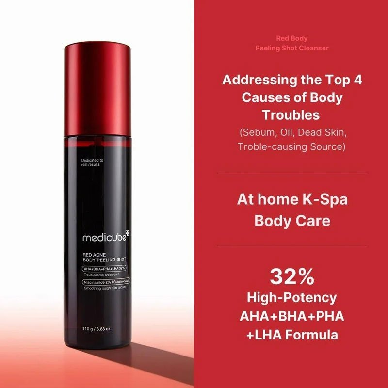 Medicube Red Acne Body Peeling Shot is a powerful exfoliating solution designed specifically for acne-prone skin on the body