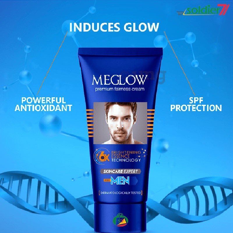 Meglow Premium Fairness Cream for Men is overall caretaker of Men’s facial skin, apart from imparting Fairness & Glow it tones Men facial skin for evenness, nourishes, heals and smoothens for a healthy skin that shines with confidence. Meglow reduces fine lines, wrinkles, dark spots & tightens the skin. It’s actives along with other ingredients targets damaged surface, diminishing dark patches, blemishes, sun spots, revealing an even toned radiance & helps in cell renewal process.