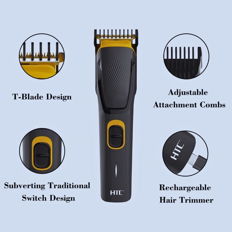 The HTC AT-509 is a versatile, budget-friendly cordless men's trimmer featuring self-sharpening stainless steel blades, 45 minutes of runtime, and USB Type-C charging. It offers adjustable cutting lengths from 0.5mm to 11mm, making it ideal for beard, moustache, and body grooming.