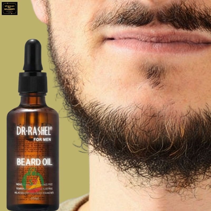 Dr Rashel Men's beard oil for thicker and longer beard growth. It is infused with hair strengthening properties of Argan Oil and Vitamin E to nourish hair roots and texture. These are conditioning ingredients that help in maintaining frizzy beard and also relieve itchy, dry skin.