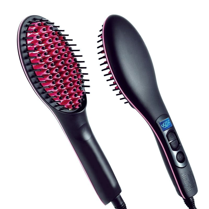 Straight Ceramic Straightening Brush is special ceramic-coated bristles heat up to just the right temperature to gently relax hair as you brush leaving you with silky-smooth straight hair in just minutes. The brush that straightens your hair. Simply brush to smooth and straighten heats up to 450 degrees.