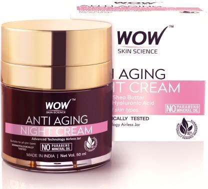 WOW Skin Science Anti Aging Night Cream powered with Matrixyl 3000 peptides and other bioactives which are Aloe Leaf Juice, Shea Butter, Olive Oil, Glycerine, Hyaluronic Acid and Vitamins C & E which helps to significantly reduce wrinkles, moisturize, repair & rejuvenate the skin.